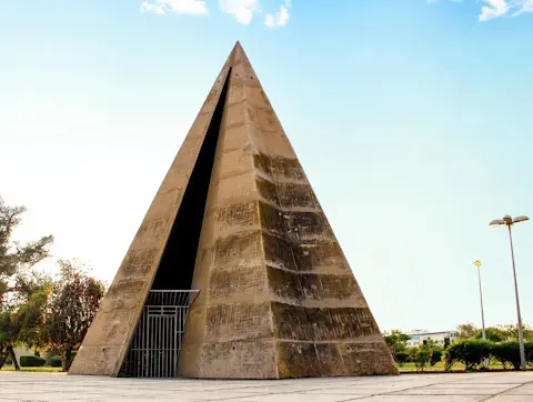 Le Manège (La Pyramide) : Une structure expérimentale en forme de pyramide ressemblant à une tente indienne, située dans la zone désignée pour le divertissement des enfants.